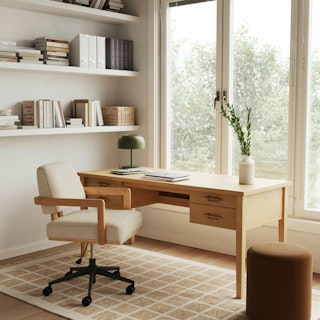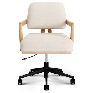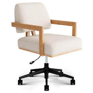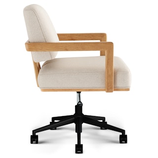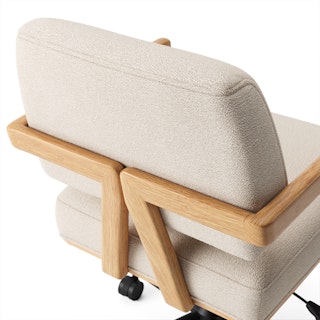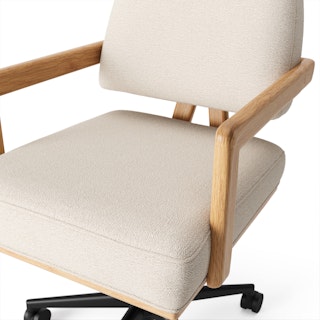 - Upholstered in a soft, non-absorptive bouclé fabric. Bouclé is an excellent choice for those who want an easy-to-care-for, style-forward office chair