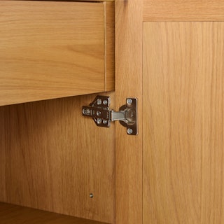 - Made from a mix of veneered and solid wood: veneer is highly durable, whereas solid wood is used to build beautiful details and support weight