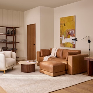 Drawing inspiration from Mid-century design, Whitmore blends timeless appeal with modern needs and ergonomics. Just like that comforting vintage leather jacket, Whitmore is upholstered in our full-aniline Salerno Tan leather for a soft, supple feel, creating a relaxed, lived-in look. Crafted with premium materials and time-tested construction, Whitmore is built for years' worth of lounging with friends and family.