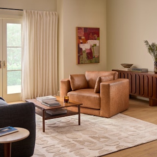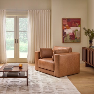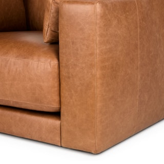 Drawing inspiration from Mid-century design, Whitmore blends timeless appeal with modern needs and ergonomics. Just like that comforting vintage leather jacket, Whitmore is upholstered in our full-aniline Salerno Tan leather for a soft, supple feel, creating a relaxed, lived-in look. Crafted with premium materials and time-tested construction, Whitmore is built for years' worth of lounging with friends and family.