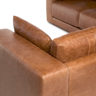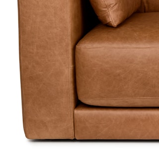 Drawing inspiration from Mid-century design, Whitmore blends timeless appeal with modern needs and ergonomics. Just like that comforting vintage leather jacket, Whitmore is upholstered in our full-aniline Salerno Tan leather for a soft, supple feel, creating a relaxed, lived-in look. Crafted with premium materials and time-tested construction, Whitmore is built for years' worth of lounging with friends and family.