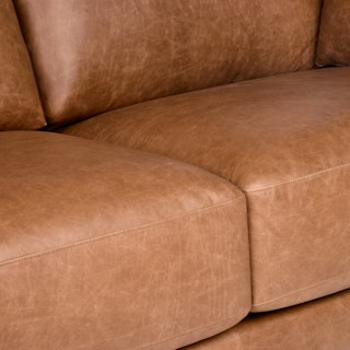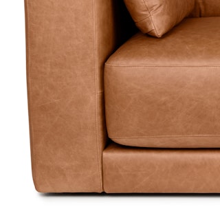 Drawing inspiration from Mid-century design, Whitmore blends timeless appeal with modern needs and ergonomics. Just like that comforting vintage leather jacket, Whitmore is upholstered in our full-aniline Salerno Tan leather for a soft, supple feel, creating a relaxed, lived-in look. Crafted with premium materials and time-tested construction, Whitmore is built for years' worth of lounging with friends and family.