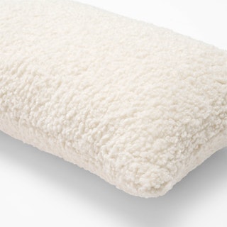- Upholstered in a soft, non-absorptive shearling fabric. Shearling is an excellent choice for those who want an easy-to-care-for, style-forward pillow