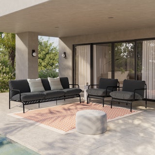 Stripes look good on everyone — but especially on these glossy, powder-coated sofas. The Sarek is built from solid steel, kind of like Superman. Also like Superman? The exceptional durability of Sunbrella® fabric. Lounge in peace knowing that Sunbrella® offers the highest resistance to both UV fading and inclement weather on the market. Super Sarek.