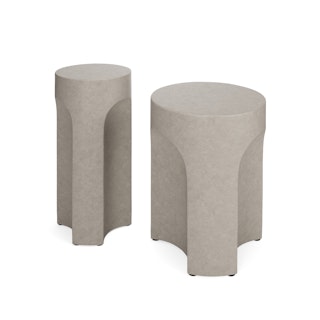 Compact with subtle curve details, the Noah side and drinks tables bring playful functionality to outdoor spaces. We've paired them together to play with dimension and height (and to make more room for snacks).