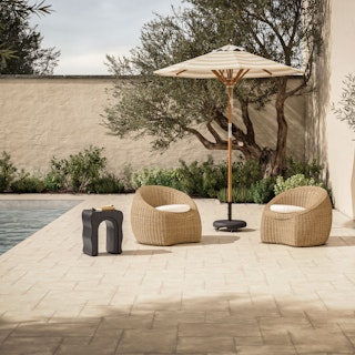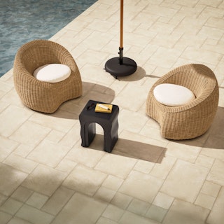 Take the Avila for a spin — and after you've made yourself dizzy showing off its 360-degree swivel, rest your legs in its sculpted base designed specifically for optimum comfort. Made of aluminum and faux wicker, the Avila doesn't just look and feel good, it's also super durable. It's like we thought of everything.