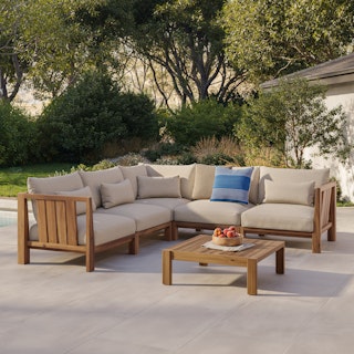 Friends in low places? With the help of the Cove collection, that will be your deck this summer. Casual and elegant, the Cove Modular Sectional combines simple framing with interesting details, like its plinth base and sharply tailored cushions. Designed to be low and loungey, it manages to feel pulled together and relaxed at the same time.