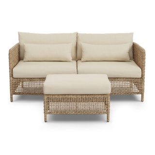 Robbi 67.25" Outdoor Loveseat and Ottoman Set - Dravite Ivory