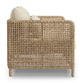 The best kind of fair-weather friend. With synthetic all-weather wicker, the Robbi Outdoor Set just wants to spend the summer outside, basking in the sun and soaking up the happy vibes of your al fresco dinners. The open-weave wicker feels visually light and relaxed, and the thickly stuffed, weather-resistant cushion is the perfect spot to rest after a long day of playing in the yard.