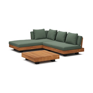 Get low. It will be love at first sight when you lay eyes (and then your whole body) on the Lubek Sectional Set. The L-shaped sectional features a solid acacia wood base and is complimented by structured yet comfortable weather-resistant cushions. Where will you put your snacks, you ask? The Lubek Coffee Table is just the spot. With matching solid acacia wood construction, it’s the perfect companion. This set was meant to be.
