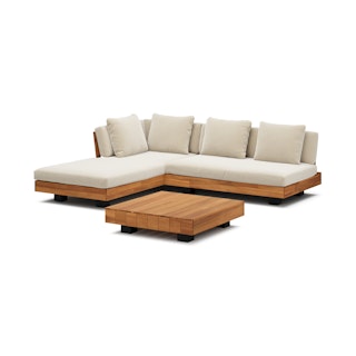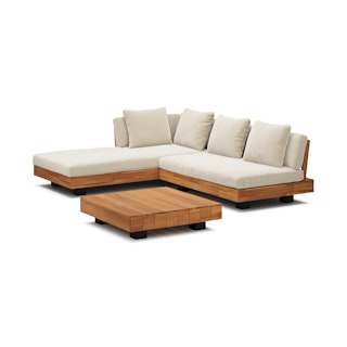 Get low. It will be love at first sight when you lay eyes (and then your whole body) on the Lubek Sectional Set. The L-shaped sectional features a solid acacia wood base and is complimented by structured yet comfortable weather-resistant cushions. Where will you put your snacks, you ask? The Lubek Coffee Table is just the spot. With matching solid acacia wood construction, it’s the perfect companion. This set was meant to be.