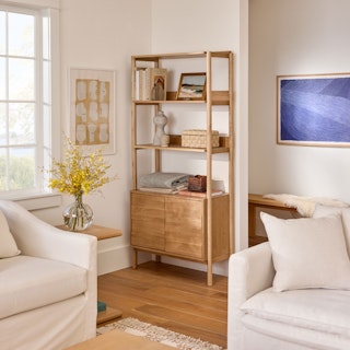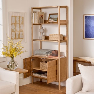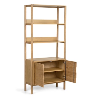 Shop Similar ItemsStudies show a person is 99.9% more likely to finish a book if they have a bookcase that looks as good as the Merto. Seriously, we did our research. Apparently, it has something to do with the cozy, undulating effect of its solid oak doors and the studious ladder-like frame. Or the fact that it can display all the epic books you've crossed off your reading list and hide the slightly more boring ones (we're looking at you, "Taxes for Dummies") in its closed storage.