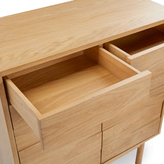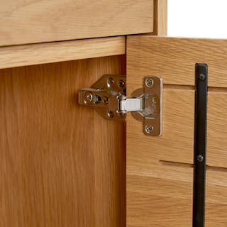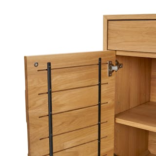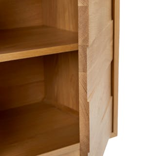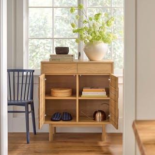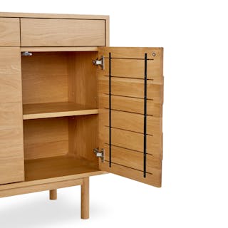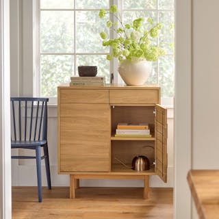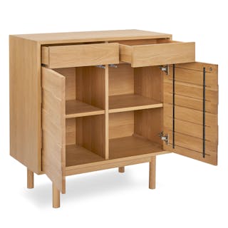Studies show a person is 99.9% more likely to tidy up their space if they have a cabinet that looks as good as the Merto. Seriously, we did our research. Apparently, it has something to do with the cozy, undulating effect of its solid oak doors and the minimal dowel-like legs. Or the fact that it can display all the epic trinkets you've collected during your travels, and hide the slightly more menial clutter (we're looking at you, stack of takeout menus) in the soft-close drawers or closed storage below.
