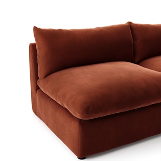 Cloud kingdom, population: you. The Leigh sofa is our comfiest sofa ever, with thoughtful details that make it the perfect place to put your feet up and nap/read/watch a show/snuggle/stare into the middle distance. Three seat styles mean you can build the perfect spot to crash, and gently angled armrests make it easy to relax without immediately falling asleep. Upholstered with our performance Hale velvet, the Leigh is here to help you to rest easy.