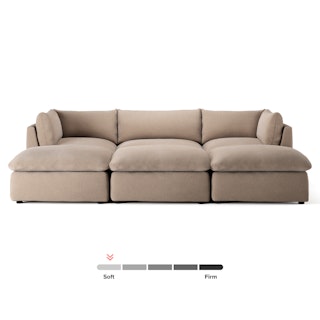 Cloud kingdom, population: you. The Leigh sofa is our comfiest sofa ever, with thoughtful details that make it the perfect place to put your feet up and nap/read/watch a show/snuggle/stare into the middle distance. Three seat styles mean you can build the perfect spot to crash, and gently angled armrests make it easy to relax without immediately falling asleep. Upholstered with our ever-so-soft bouclé fabric, the Leigh is here to help you to rest easy.