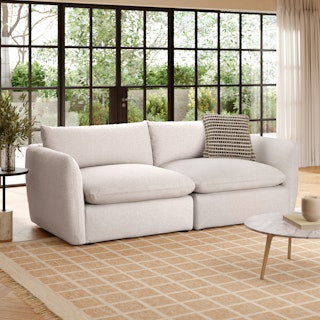 Cloud kingdom, population: you. The Leigh sofa is our comfiest sofa ever, with thoughtful details that make it the perfect place to put your feet up and nap/read/watch a show/snuggle/stare into the middle distance. Three seat styles mean you can build the perfect spot to crash, and gently angled armrests make it easy to relax without immediately falling asleep. Upholstered with stain-resistant Napa fabric, the Leigh is here to help you to rest easy.