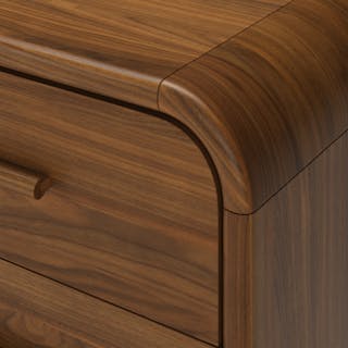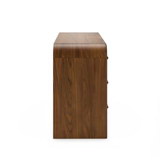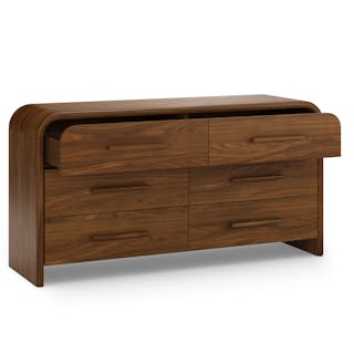 A design that's ahead of the curve. The Faydra dresser is bedroom storage at its most avant-garde. With a unique sloping design and six handy drawers, the Faydra is more than just a pretty storage option: a veneered exterior and sculptural solid-wood handles make this a pretty beautiful place to store your most prized garments.