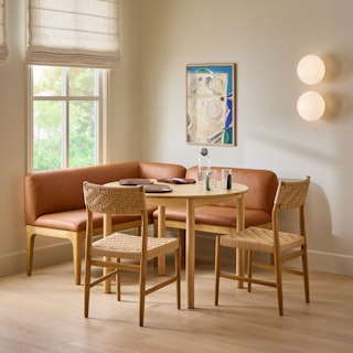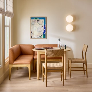 Your breakfast nook is in for a major upgrade. With solid wood legs, base, and densely packed foam seats wrapped in our soft and supple semi-aniline Lucia leather, the Rosin banquette is also — wait for it! — modular. What if your breakfast nook became... a breakfast wall... think about it.'