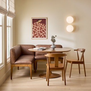 Your breakfast nook is in for a major upgrade. With solid wood legs, base, and densely packed foam seats wrapped in our soft and supple semi-aniline Lucia leather, the Rosin banquette is also — wait for it! — modular. What if your breakfast nook became... a breakfast wall... think about it.'