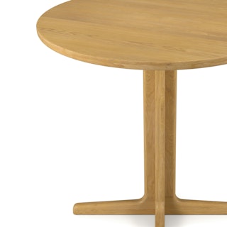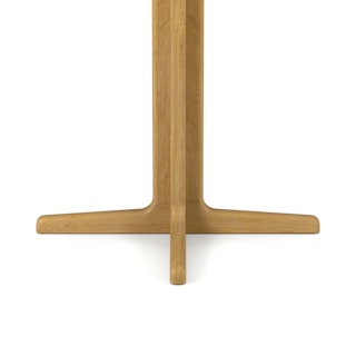 - Pedestal base constructed from solid wood