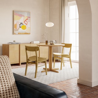 Get a taste of Paris with the Odie Café Table, your own little French bistro steeped in Mid-century charm. Our modern interpretation of a vintage classic is built for durability and strength, featuring a solid wood pedestal base and elegantly rounded tabletop edges—perfect for those relaxing coffee dates.