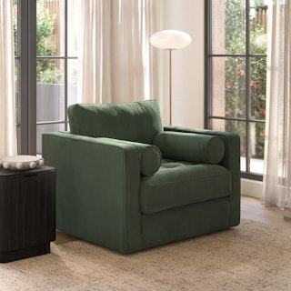 Sven 42.5" Tufted Velvet Swivel Chair - Plush Pacific Green