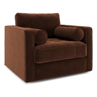 Sven 42.5" Tufted Velvet Swivel Chair - Plush Pacific Brown