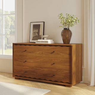 Quirky, charming, and practical—we get it, Boe, you’re cute. Inspired by Scandinavian simplicity, Boe features soft, rounded edges and beautifully scalloped details that infuse your home with playful sophistication. Its low, oversized feet give it a grounded presence, making it an effortlessly stylish and practical spot for your bedroom essentials.