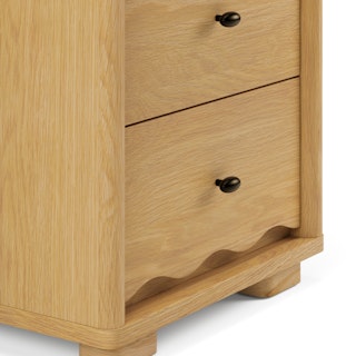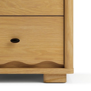 Quirky, charming, and practical—we get it, Boe, you’re cute. Inspired by Scandinavian simplicity, Boe features soft, rounded edges and beautifully scalloped details that infuse your home with playful sophistication. Its low, oversized feet give it a grounded presence, making it an effortlessly stylish and practical spot for your bedroom essentials.