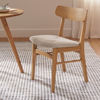 Well-studied. A classic mid-century schoolhouse frame is given a modern update with fresh, long-wearing fabrics. This versatile chair features a wide, slightly-curved back that provides great support for long dinners with friends or late night study sessions.