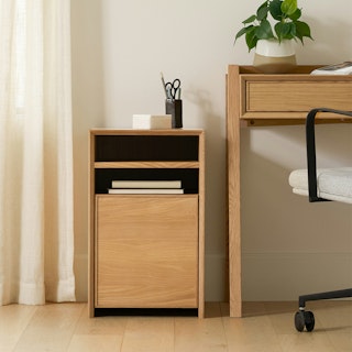 With its spacious filing drawer designed to hold all your important documents, the Fantol filing cabinet can stand on its own. However, we did make it the perfect height to fit underneath the Fantol desk.