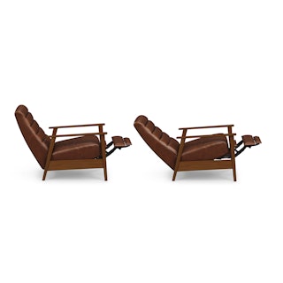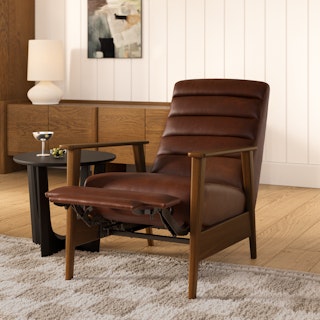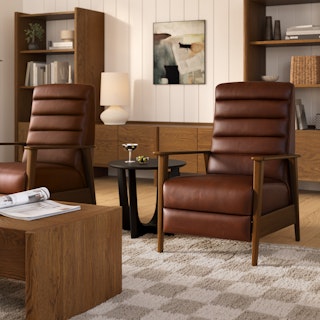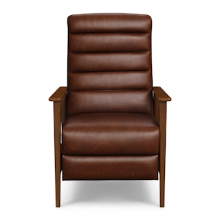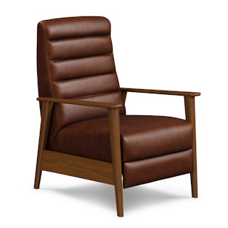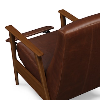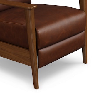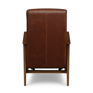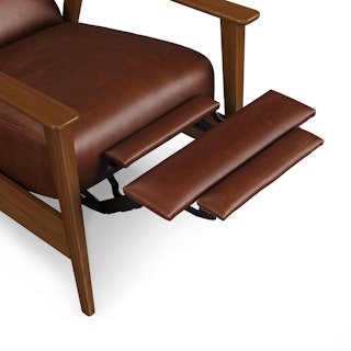 A master of disguise, the Ellow Recliner effortlessly transforms from a mid-century modern lounge chair to a deluxe recliner. Upholstered in Indiana Brown "pull-up" leather with solid walnut legs, the Ellow features a 3-point push back reclining mechanism that gives you more control over the way you lounge. All the way back for your afternoon nap, partially-reclined for a relaxed game show marathon, or fully upright when you’ve got company — the choice is yours.