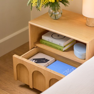 Playful but never silly, the Prima adds a little zhuzh to the utilitarian nightstand. Bedside storage? No: the Prima does not simply store things. It caresses them in its soft close drawer, readying your things for service. Built upon a plinth base, the Prima's drawers have a chamfer inset for easy opening without interrupting the arch line.