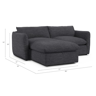 Cloud kingdom, population: you. The Leigh is our comfiest sofa ever, and now it's available as the comfiest hybrid of all: a reversible storage sectional. With a reversible chaise cushion and ottoman for left or right orientation, ample storage space within the ottoman, and stuffed with super-soft foam and duck down, the Leigh is your perfectly-sinkable sofa solution that still looks polished and poised.