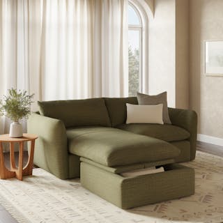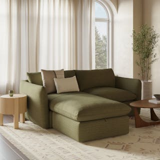 Cloud kingdom, population: you. The Leigh is our comfiest sofa ever, and now it's available as the comfiest hybrid of all: a reversible storage sectional. With a reversible chaise cushion and ottoman for left or right orientation, ample storage space within the ottoman, and stuffed with super-soft foam and duck down, the Leigh is your perfectly-sinkable sofa solution that still looks polished and poised.