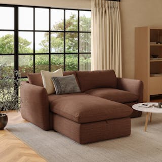 Cloud kingdom, population: you. The Leigh is our comfiest sofa ever, and now it's available as the comfiest hybrid of all: a reversible storage sectional. With a reversible chaise cushion and ottoman for left or right orientation, ample storage space within the ottoman, and stuffed with super-soft foam and duck down, the Leigh is your perfectly-sinkable sofa solution that still looks polished and poised.