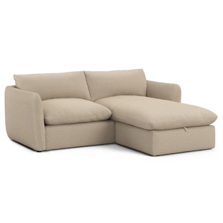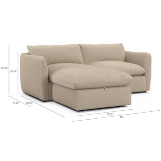 Cloud kingdom, population: you. The Leigh is our comfiest sofa ever, and now it's available as the comfiest hybrid of all: a reversible storage sectional. With a reversible chaise cushion and ottoman for left or right orientation, ample storage space within the ottoman, and stuffed with super-soft foam and duck down, the Leigh is your perfectly-sinkable sofa solution that still looks polished and poised.