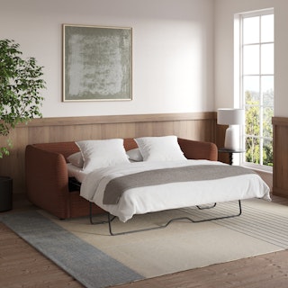 Cloud kingdom, population: you. The Leigh is our comfiest sofa ever, and now it's available as the comfiest hybrid of all: a sofa bed. Stuffed with super-soft foam and duck down, the Leigh is your perfectly-sinkable sofa solution that still looks polished and poised. Upholstered with stain-resistant Napa fabric, you can rest easy.