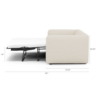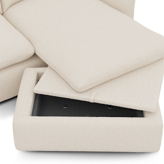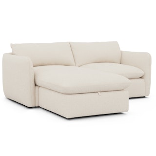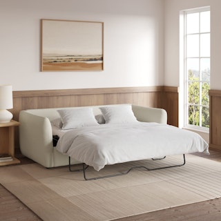 Cloud kingdom, population: you. The Leigh is our comfiest sofa ever, and now it's available as the comfiest hybrid of all: a sofa bed. Stuffed with super-soft foam and duck down, the Leigh is your perfectly-sinkable sofa solution that still looks polished and poised. Upholstered in a soft, non-absorptive bouclé fabric, you can rest easy.