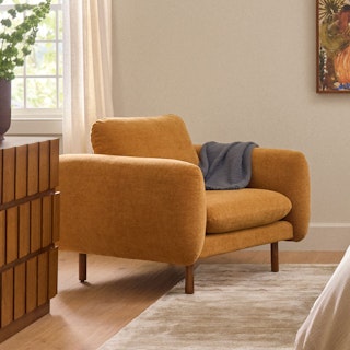 The chair looks elegant and is comfortable to curl up in. More on the firm side and very deep, which is perfect for me. Note that the boucle is a bit rough to t... More