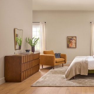 The Sanders sofa and ottoman is comprised of striking panels that make for a simple silhouette with interesting design details. Loose base and back cushions make this sofa easy to care for, and great for building forts. And who doesn’t want a stylish, Scandi-inspired sofa set that transforms into a beautiful fort?