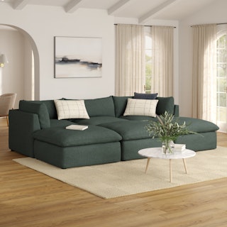 Leigh 121.5" Modular Open Pit Sectional - Green Wool Bouclé