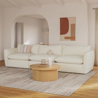 Cloud kingdom, population: you. The Leigh sofa is our comfiest sofa ever, with thoughtful details that make it the perfect place to put your feet up and nap/read/watch a show/snuggle/stare into the middle distance. Three seat styles mean you can build the perfect spot to crash, and gently angled armrests make it easy to relax without immediately falling asleep. Upholstered with our ever-so-soft bouclé fabric, the Leigh is here to help you to rest easy.
