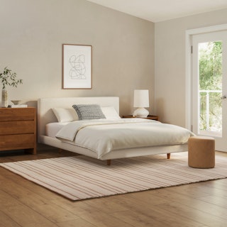 Tessu Queen Low Profile Upholstered Bed - Ivory Wool Bouclé