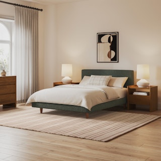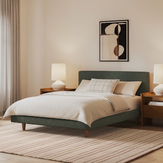 Tessu Full Low Profile Upholstered Bed - Green Wool Bouclé