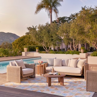 Artisanal technique, modern design. The Willa lounge chair balances airy lightness with a bohemian touch. With a curved frame and plush, weather-resistant cushions, the Willa is a beautiful combination of practicality and whimsical details.
