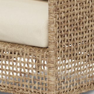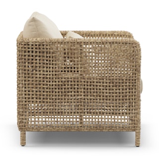 The best kind of fair-weather friend. With synthetic all-weather wicker, the Robbi Lounge Chair just wants to spend the summer outside, basking in the sun and soaking up the happy vibes of your al fresco dinners. The open-weave wicker feels visually light and relaxed, and the thickly stuffed, weather-resistant cushion is the perfect spot to rest after a long day of playing in the yard.