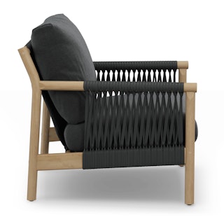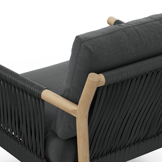 More than just a pretty face. The Rosa is built from solid eucalyptus wood, with dowelled legs and bracing. And the cushions — not only are they high-density foam, but they are upholstered with UV- and water-resistant fabric. With airy criss-cross weave details, the Rosa is as pretty as she is comfortable. And she is really, really comfortable.