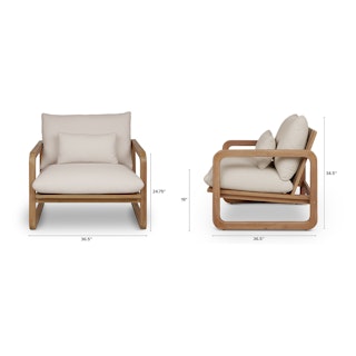 - Loose seat and back cushions upholstered in a UV and water-resistant Olefin fabric