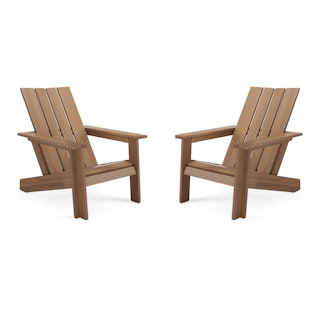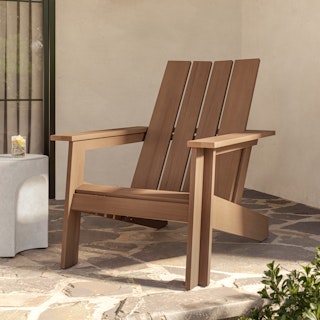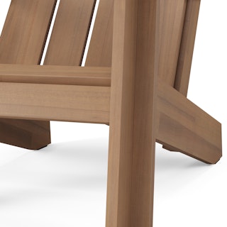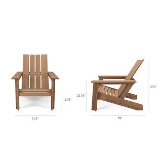 Simple and elegant, the Rena adirondack chair is made from solid eucalyptus wood. This timeless design has been modernized with wide angled planks and dovetail details. Perfect for your fire pit, your deck, or for people-watching on your front porch.
